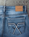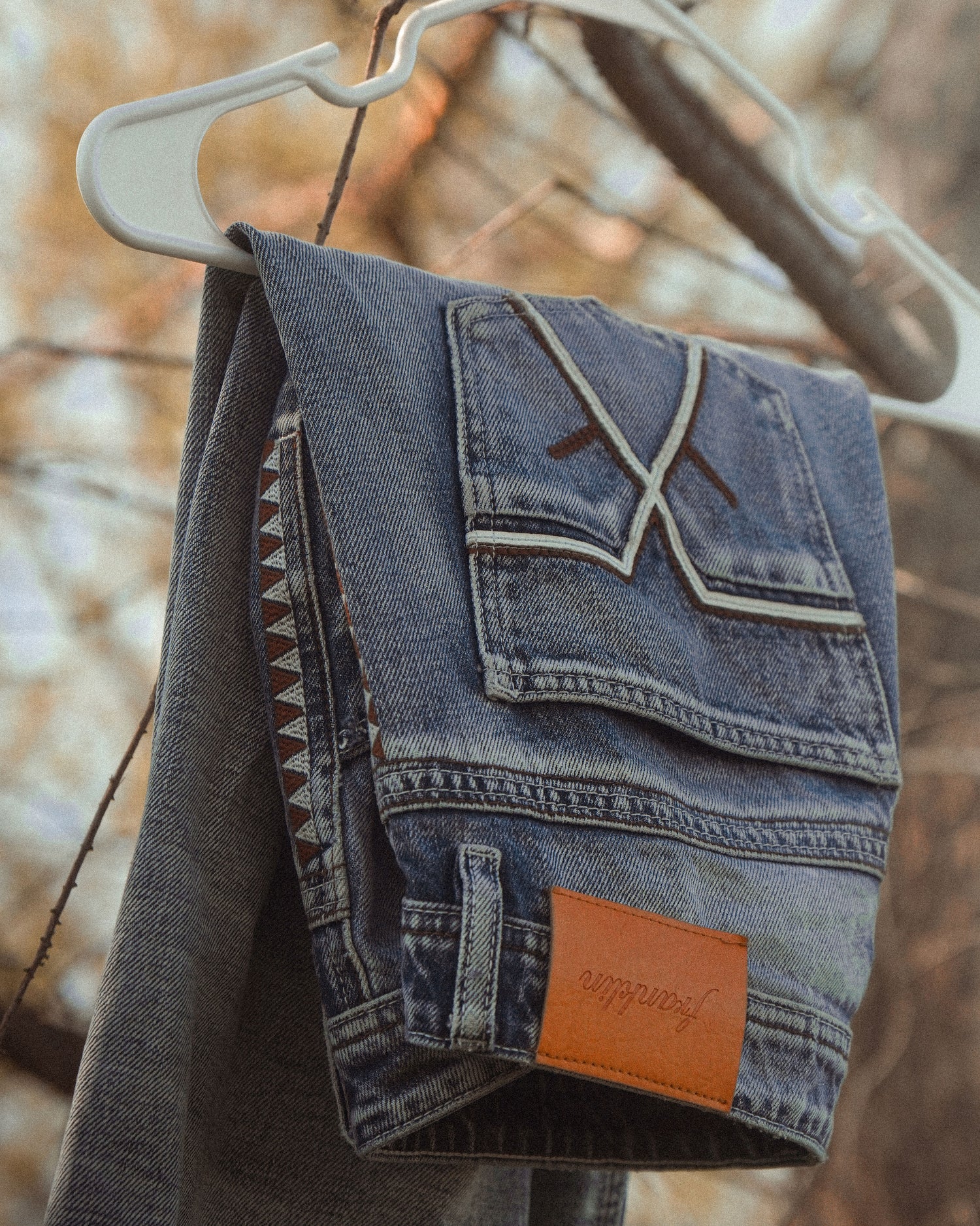 western style jeans,100% cotton material and embroidery stitching. these jeans have a baggy/bootcut fit they feel pretty relaxing and comfortable even with their classic look.
